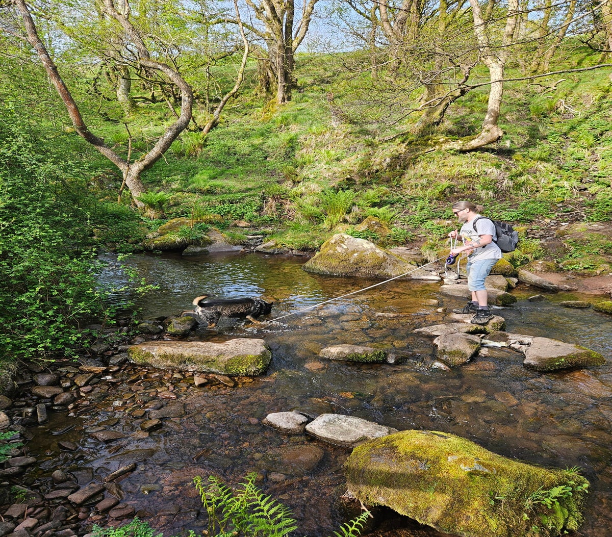 I enjoyed this nice long walk. I had to have my lead on anti-pull (nicknamed the 'anti-twat' 🤪) for some of the walk because of the steep declines. I particularly enjoyed paddling in the river.