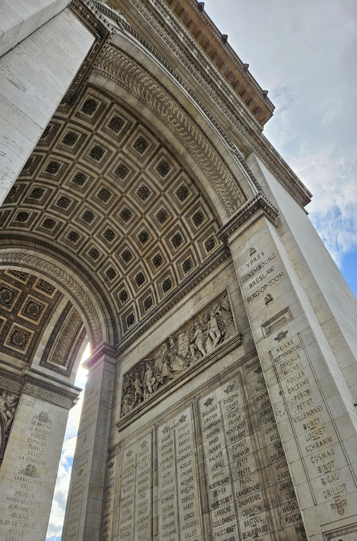 The Arc de Triomphe is in the middle of the Pl. Charles de Gaulle roundabout. The views from outside of the roundabout are great, although you will likely have cars and buses in your photos due to this being one of the busiest roundabouts in Paris.