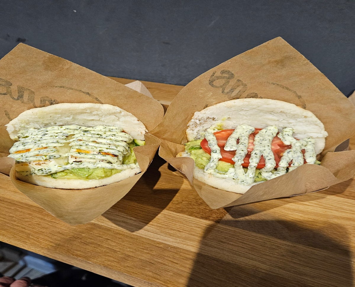 They serve Arepas (kind of a cross between a kebab and a burger) and chips, and had several vegetarian options. There was very limited seating in there, but we had no problem getting a seat on each visit (and the seat was appreciated, as they were incredibly messy to eat!).